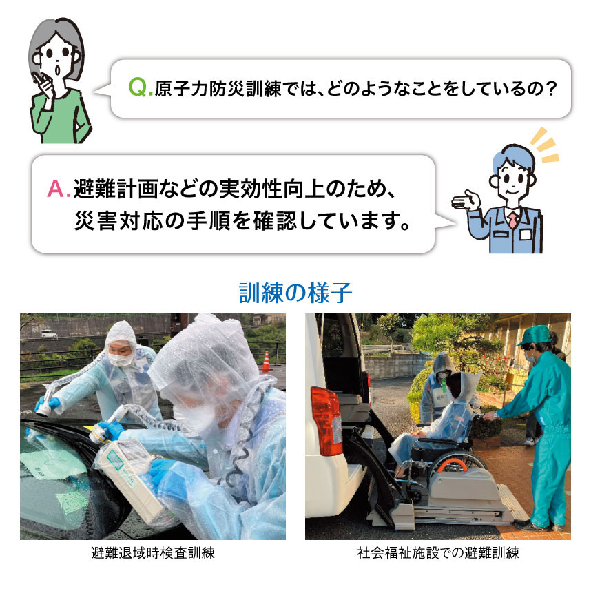 避難計画などの実効性向上のため、災害対応の手順を確認しています。万が一の原子力災害に備え、2県6市(島根県、鳥取県、松江市、出雲市、安来市、雲南市、米子市、境港市)合同で、毎年度、原子力防災訓練を実施…
